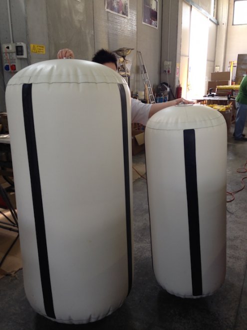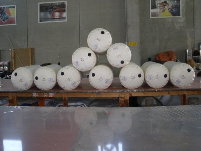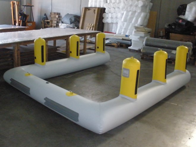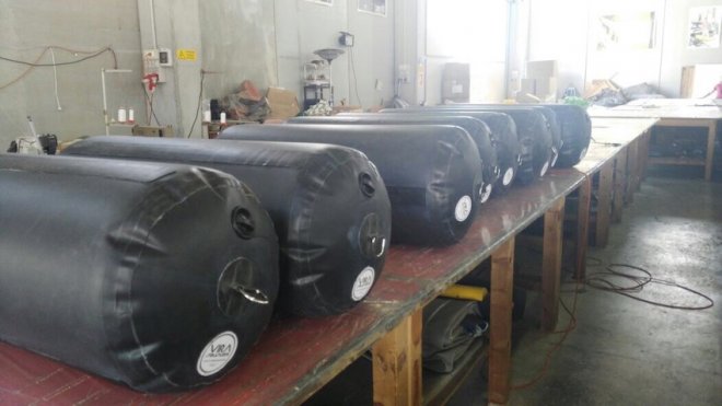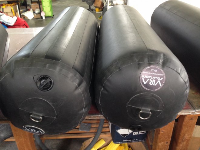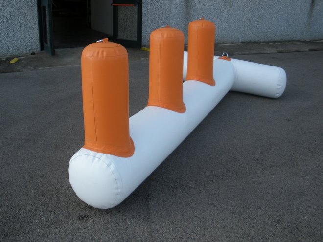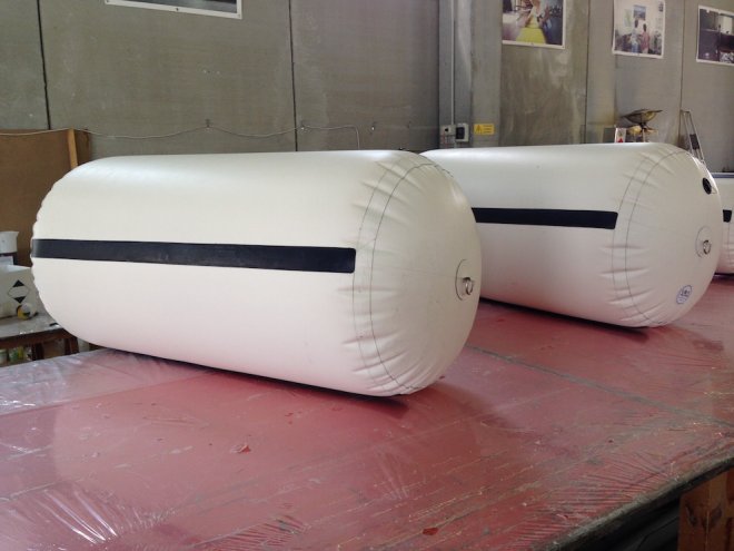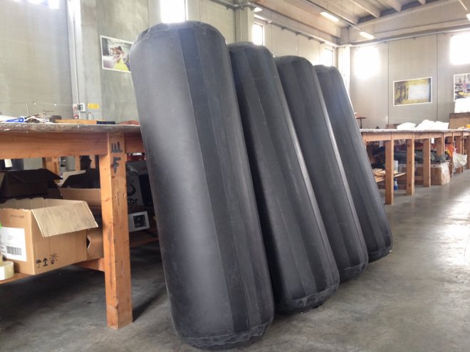 Parabordi gonfiabili in tessuto gommato ad alta resistenza, rinforzi in gomma anti abrasione.