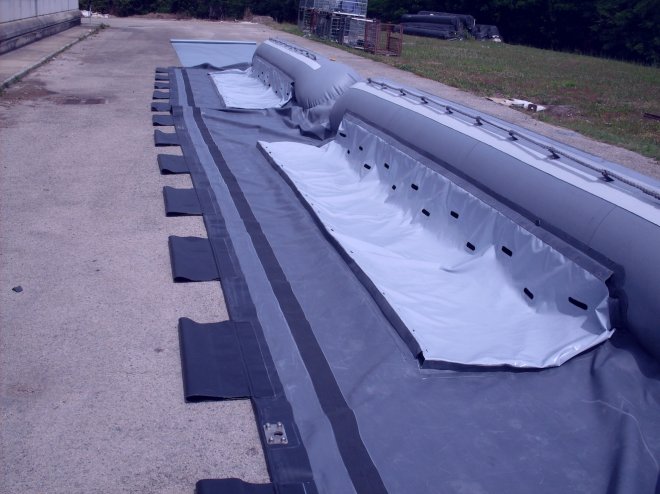 barriere con grembiuli gonfiabili per la risalita comandata del grembiule stesso