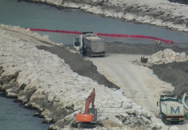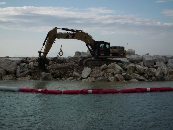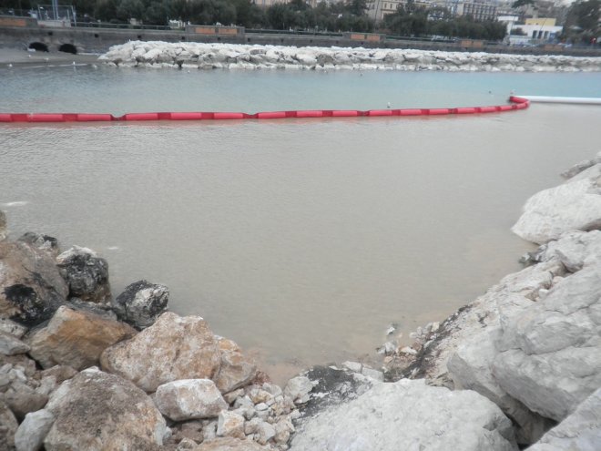 per delimitare le acque interessate dai lavori di dragaggio o di costruzione.