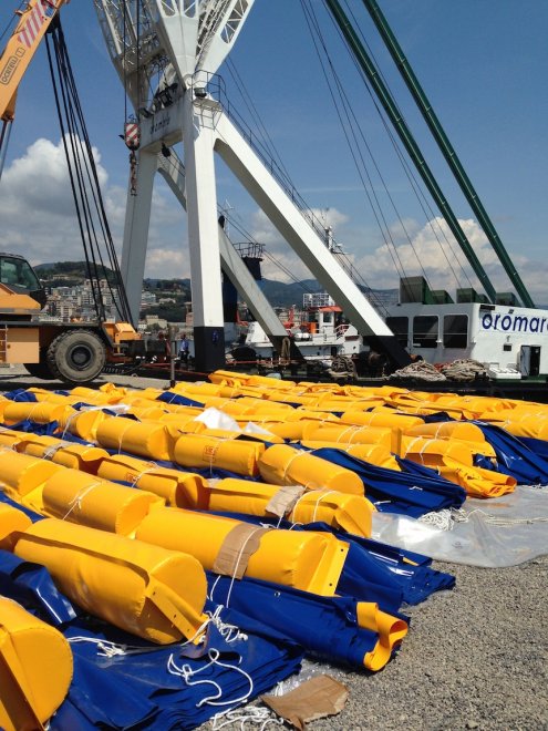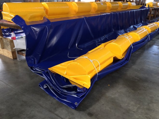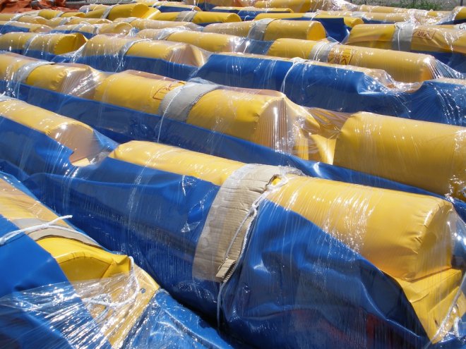 Elementi galleggianti in polietilene espanso a celle chiuse rivestite di tessuto, materiale morbido anti urto, inaffondabile anche se lacerato.