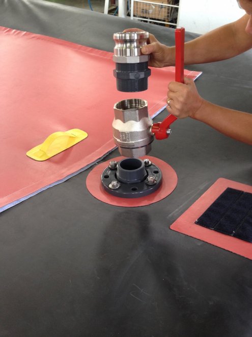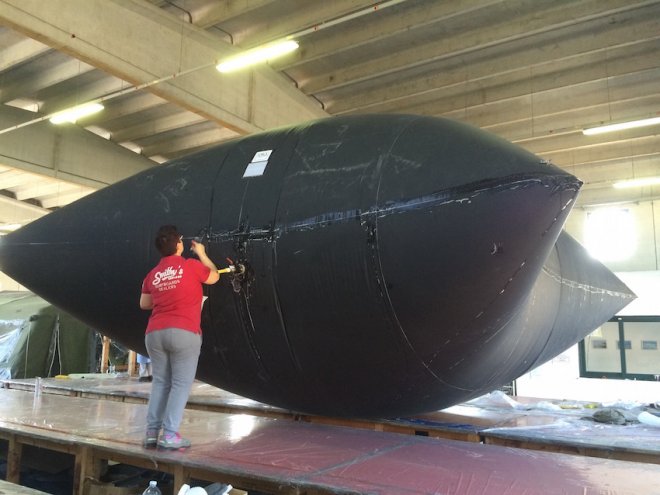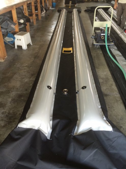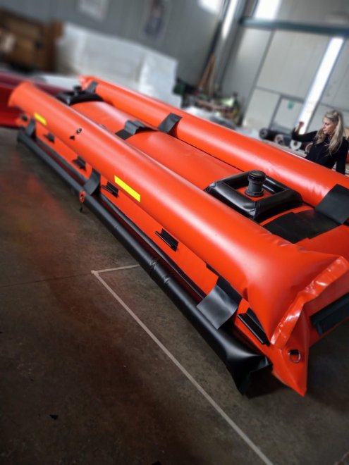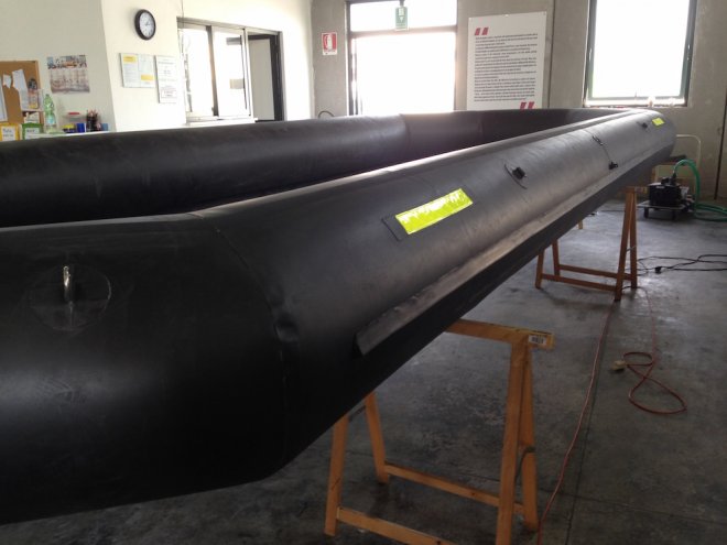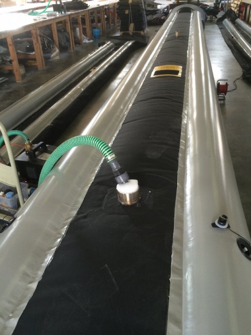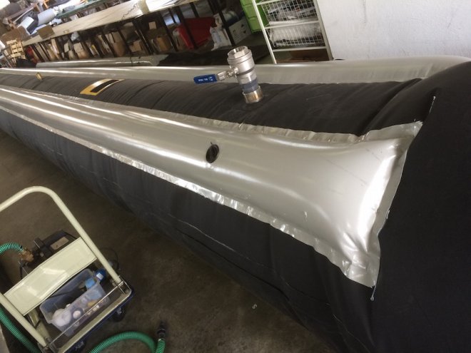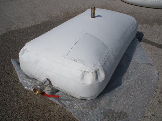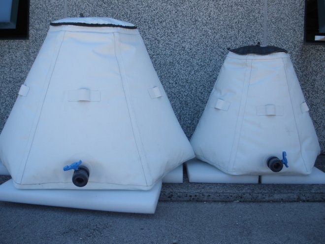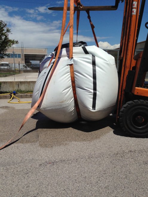 Serbatoi flessibili per il contenimento di acque di recupero da spargimenti di idrocarburi in acqua.