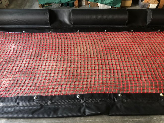 Grembiule a rete personalizzabile; sicurezza per la balneazione nella versione con rete semi-rigida anti impiglio.